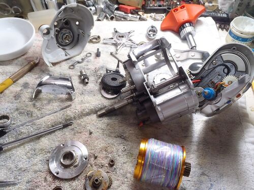ちょい旧のレヲブリッツ270。 もう、メーカー対応は終了している様子。 ベルトドライヴ式で地味に面倒な作りをしています。 スプールの中に遊星ギアがあるタイプ。 こいつが意外に面倒で、とにかくベアリングが錆やすい。 そして、無駄にベアリングが多い…